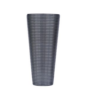 Jarrón de vidrio con delicadas vetas azules que crean un efecto artístico y fluido. Su diseño estilizado y combinación de tonos aportan frescura y elegancia, ideal para decorar cualquier espacio con un toque moderno y sofisticado.