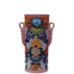 Papelera decorativa con diseno de Talavera. un hermoso elemento para cualquier oficina.