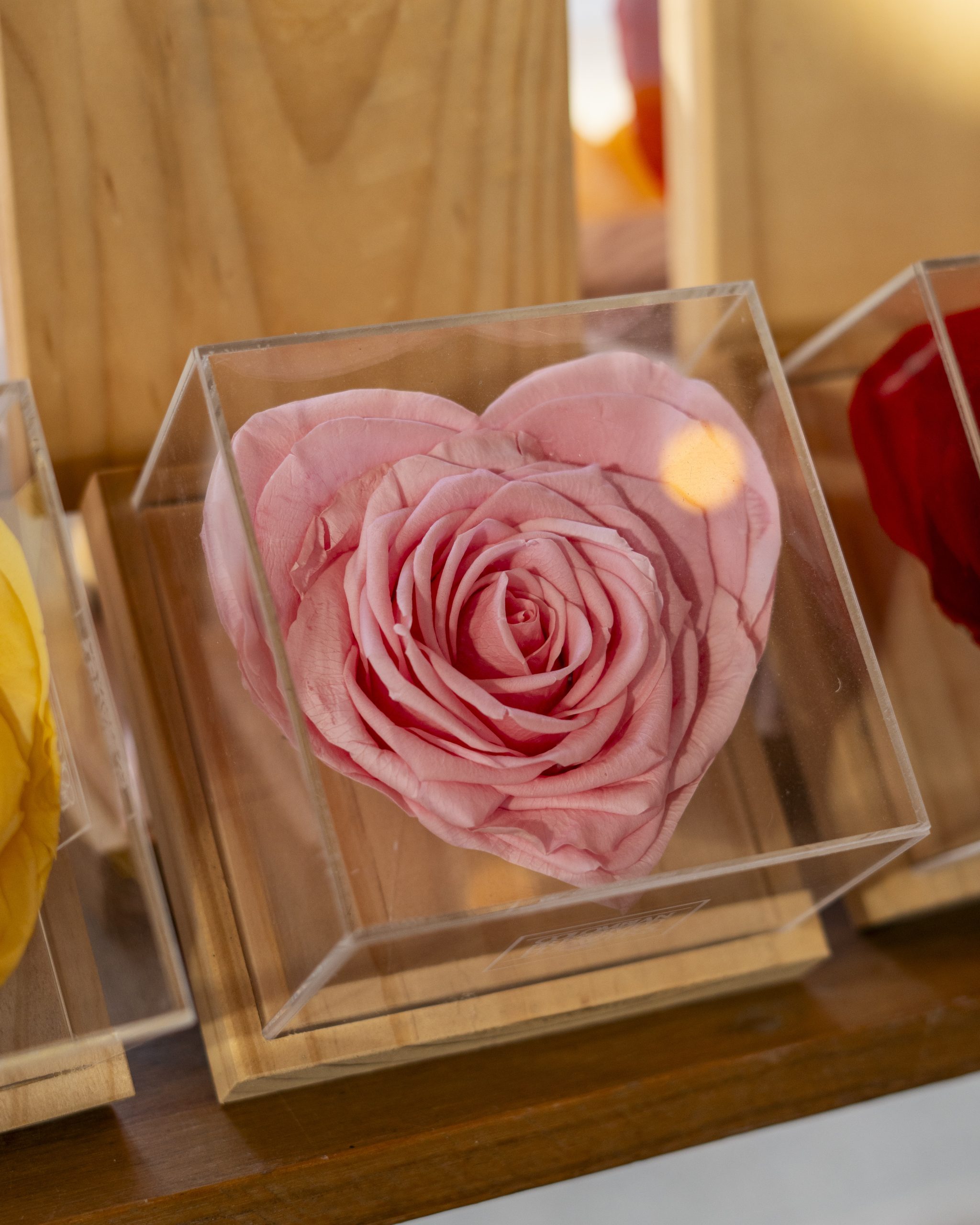 Rosa eterna en forma de corazón, delicada y romántica, diseñada para conservar su belleza por mucho tiempo. Un detalle especial que simboliza amor y momentos inolvidables.