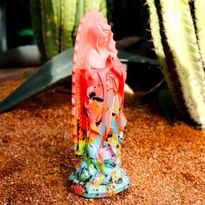 Escultura decorativa con acabado brillante e intervención artística en colores vibrantes y trazos abstractos, una pieza única que aporta carácter y modernidad a cualquier espacio. Se entrega con certificado de autenticidad que incluye nombre de la obra, técnica utilizada, materiales, dimensiones, año de creación y firma del artista, garantizando su originalidad y valor artístico.